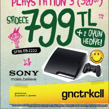 Gnctrkcll kampanyaları, Sony kampanya PS3 ile, Sony kampanya 2012′den yararlanmak isteyenlerin tek yapmaları gereken, GNCtrkcll kullanıcısı olmak. PlayStation 3 kampanya 2012 ile, 320 GB PlayStation 3; bir tane oyun ile birlikte, God Of War 3 ya da InFamous 2, 799 TL’lik fiyatı ile satılacak. PlayStation 3kampanya 2012, PlayStation Move için de geçerli olacak. 320 GB Playstation 3 ile birlikte, PlayStation Move kamerası; ve PlayStation Move hareket kumandası, PlayStation Move oyunu, God Of War 3; ya da InFamous 2 için ödenecek olan fiyat aynı: 799 TL…